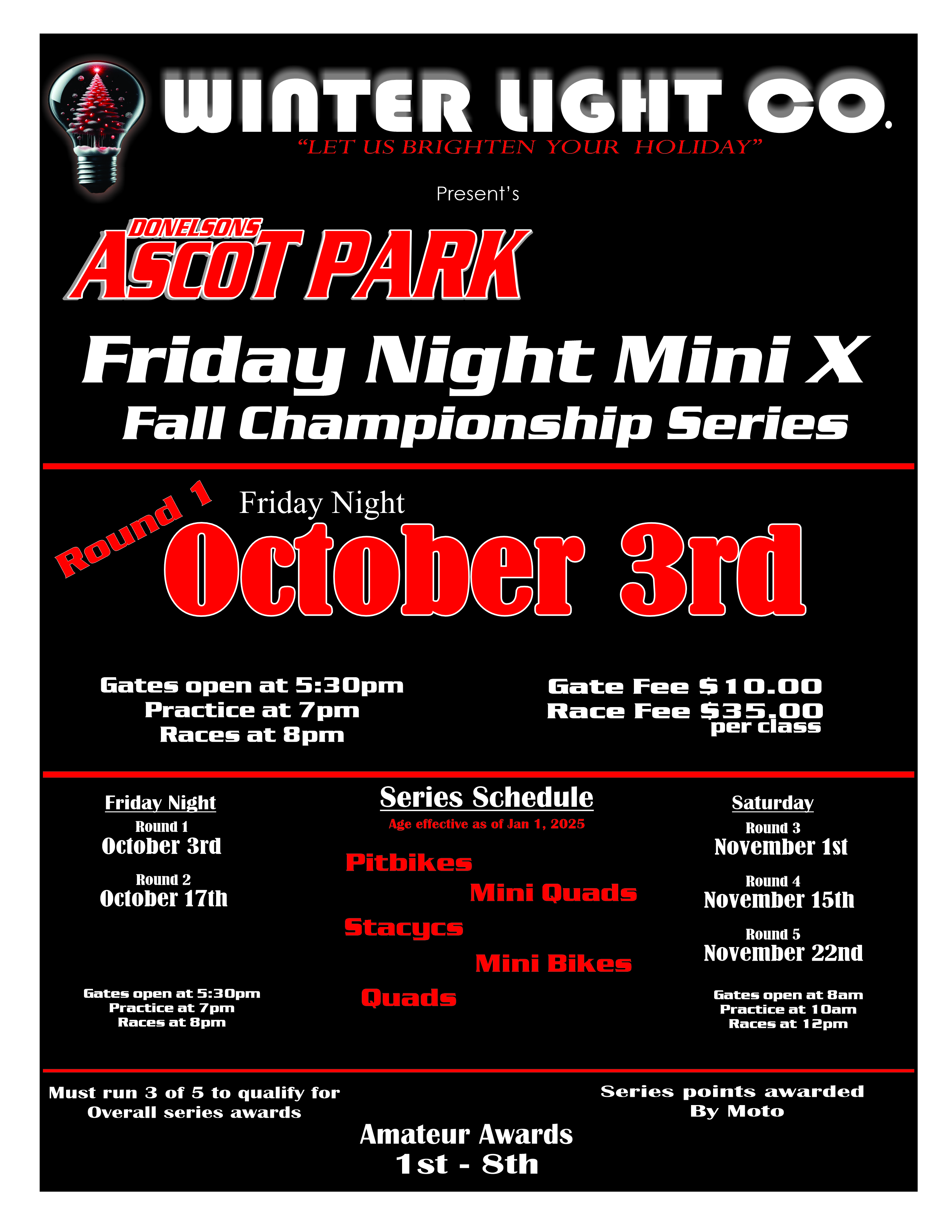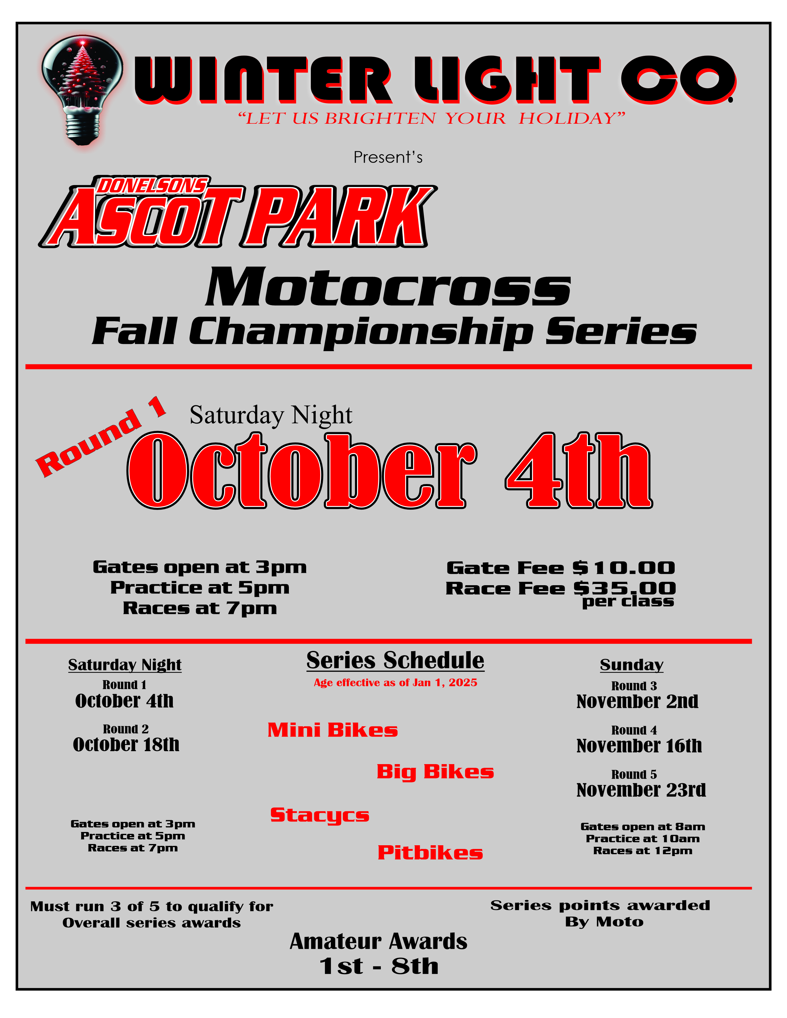 October 17th & 18th Fall Championship Series and Final Rd of the CSK Powersports MX Thunder Series